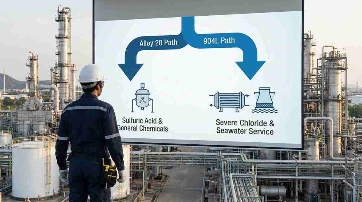 En el contexto de la selección de aleación 20 frente a 904L en plantas químicas, los ingenieros deben tener en cuenta el coste total del ciclo de vida. En las plantas de procesamiento químico, la aleación 20 es el material preferido para tanques de decapado, tanques de mezcla e intercambiadores de calor que trabajan con concentraciones de ácido sulfúrico de hasta 95% a temperaturas elevadas.