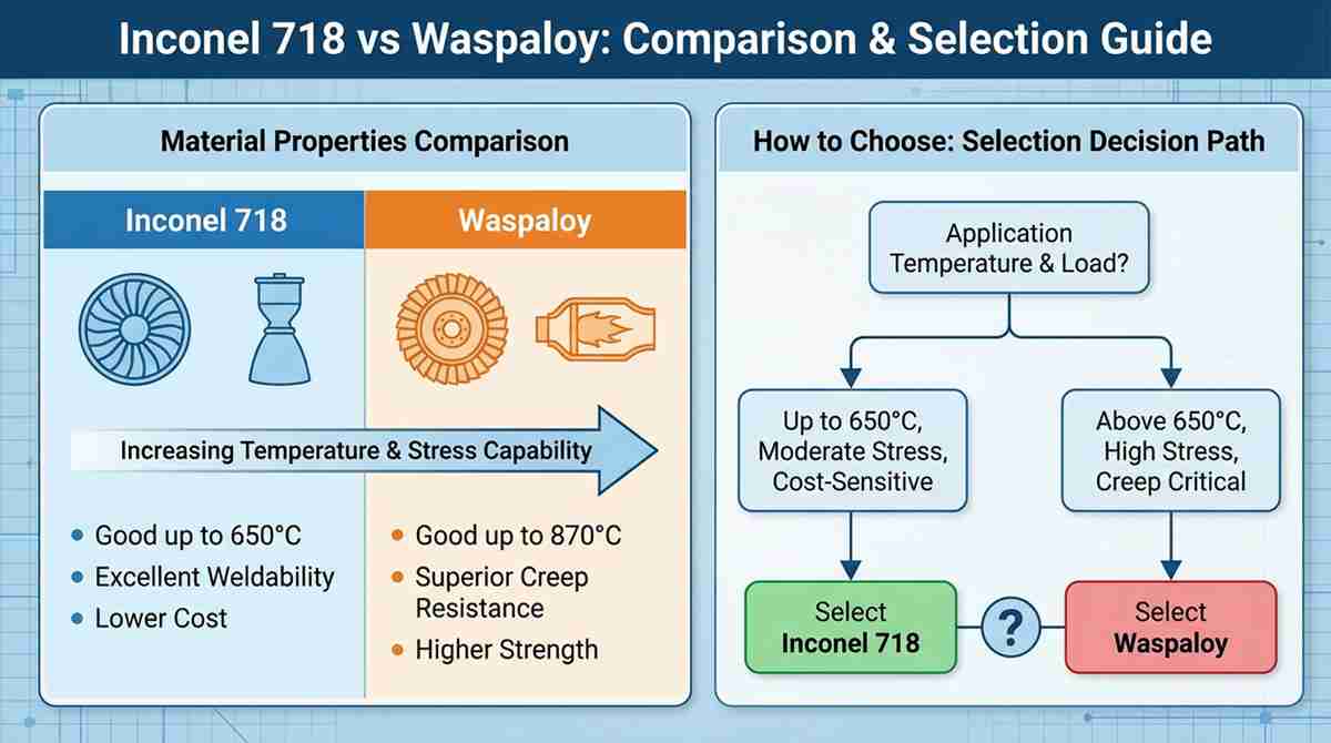 En el exigente mundo de la ingeniería aeroespacial y de turbinas de gas, seleccionar la superaleación de níquel adecuada es una decisión crítica que equilibra el rendimiento mecánico, la estabilidad térmica y la rentabilidad. Inconel 718 y Waspaloy son dos de los materiales más destacados de esta categoría, ambos apreciados por su excepcional resistencia a temperaturas elevadas. Sin embargo, sus perfiles metalúrgicos y techos de rendimiento difieren significativamente.