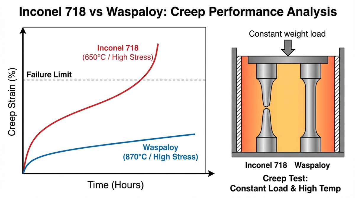 718 vs. Waspaloy Creep Performance: El umbral de temperatura